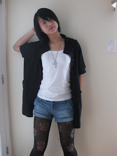 Anyway, I took pictures of my outfit last week. I tried wearing this combo... Not something that I wear usually but it was comfty. I tried adding the red bracelet because I found the outfit too dull, didn't turn out so well.
